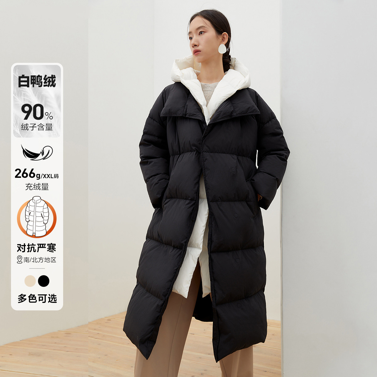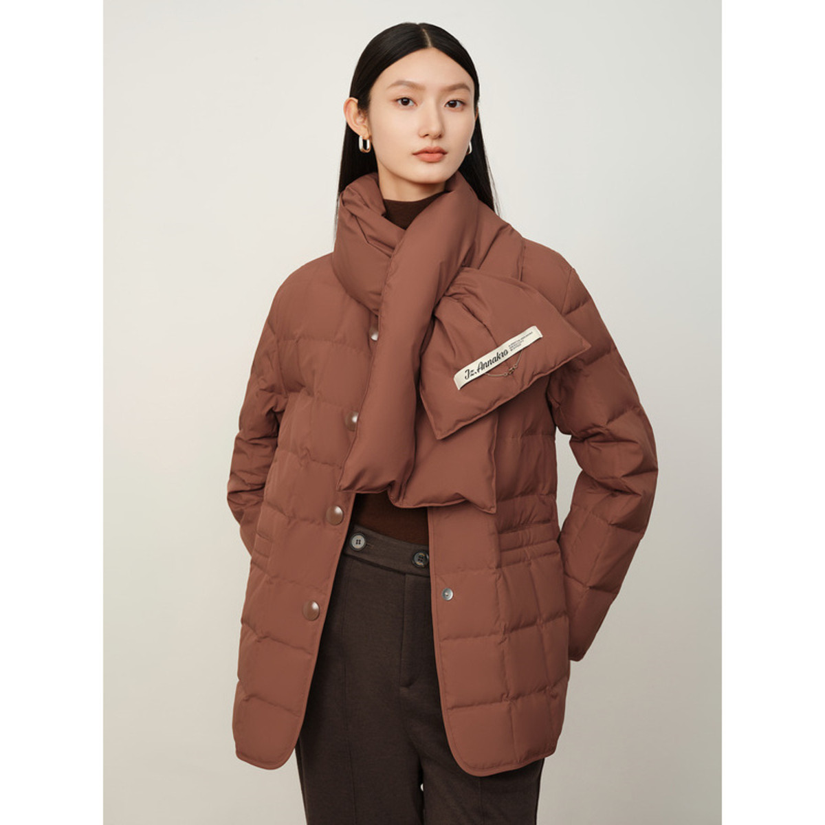 【仙·羽绒】玖姿旗下安娜蔻系列可拆卸围巾领中长款羽绒服女冬季 144716