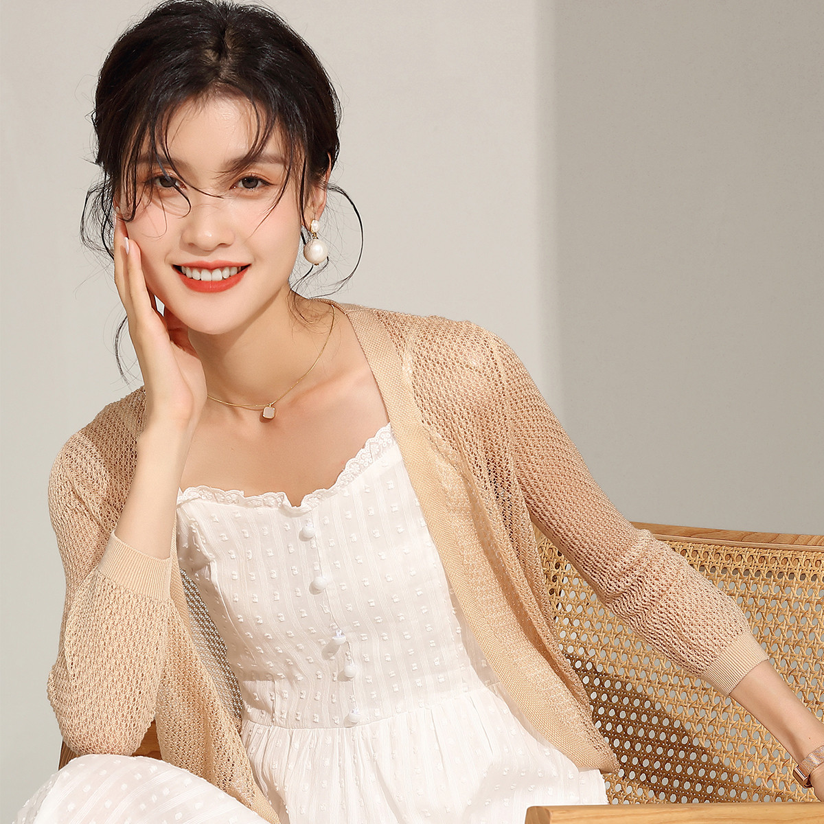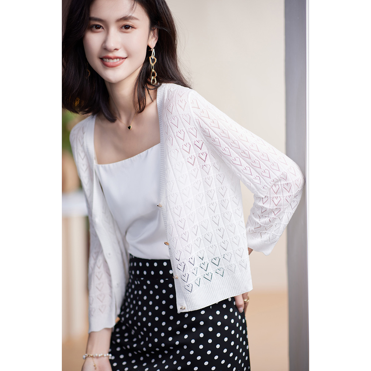 【含桑蚕丝含莱赛尔】夏季外套女薄款披肩外搭镂空空调衫外套女 554655