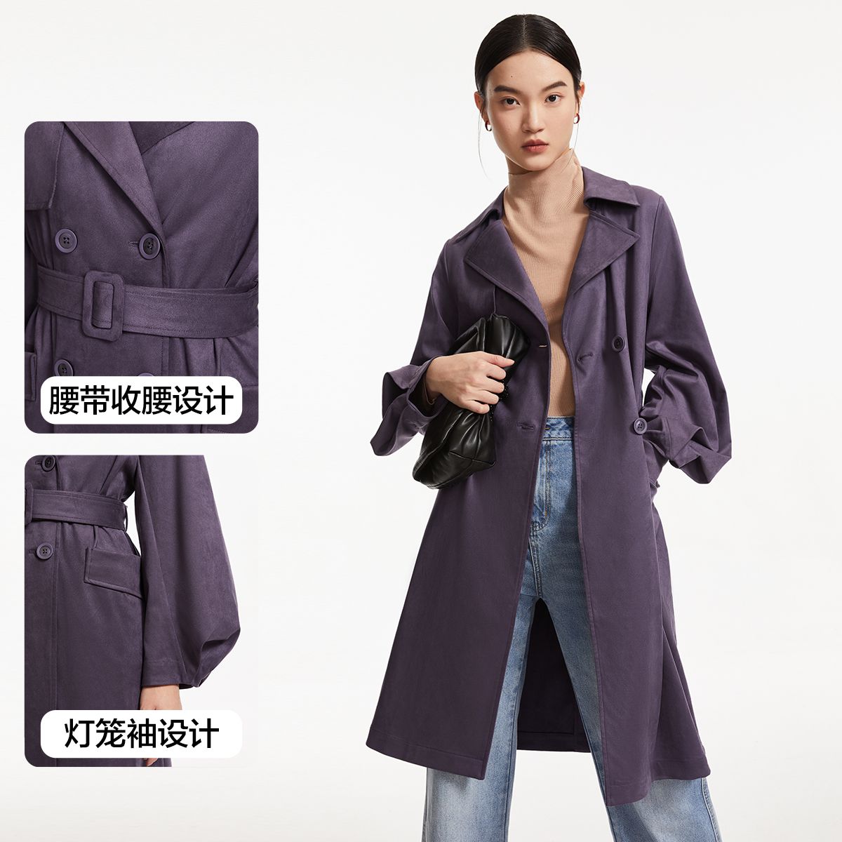 收腰双排扣中长款纯色风衣外套女气质百搭时尚春夏 695057