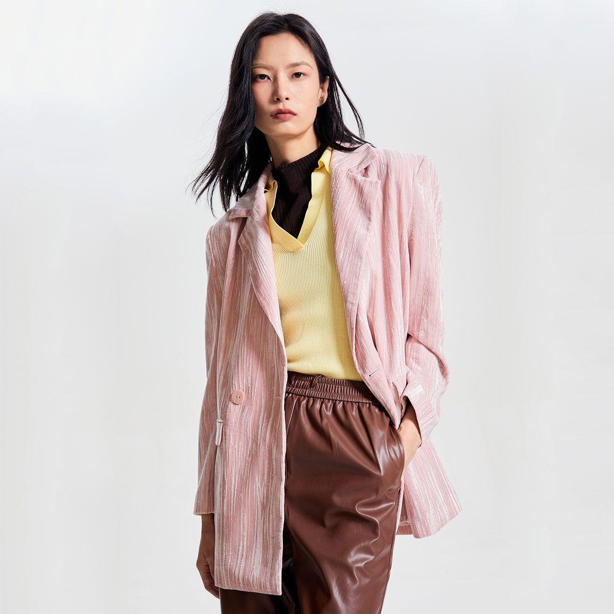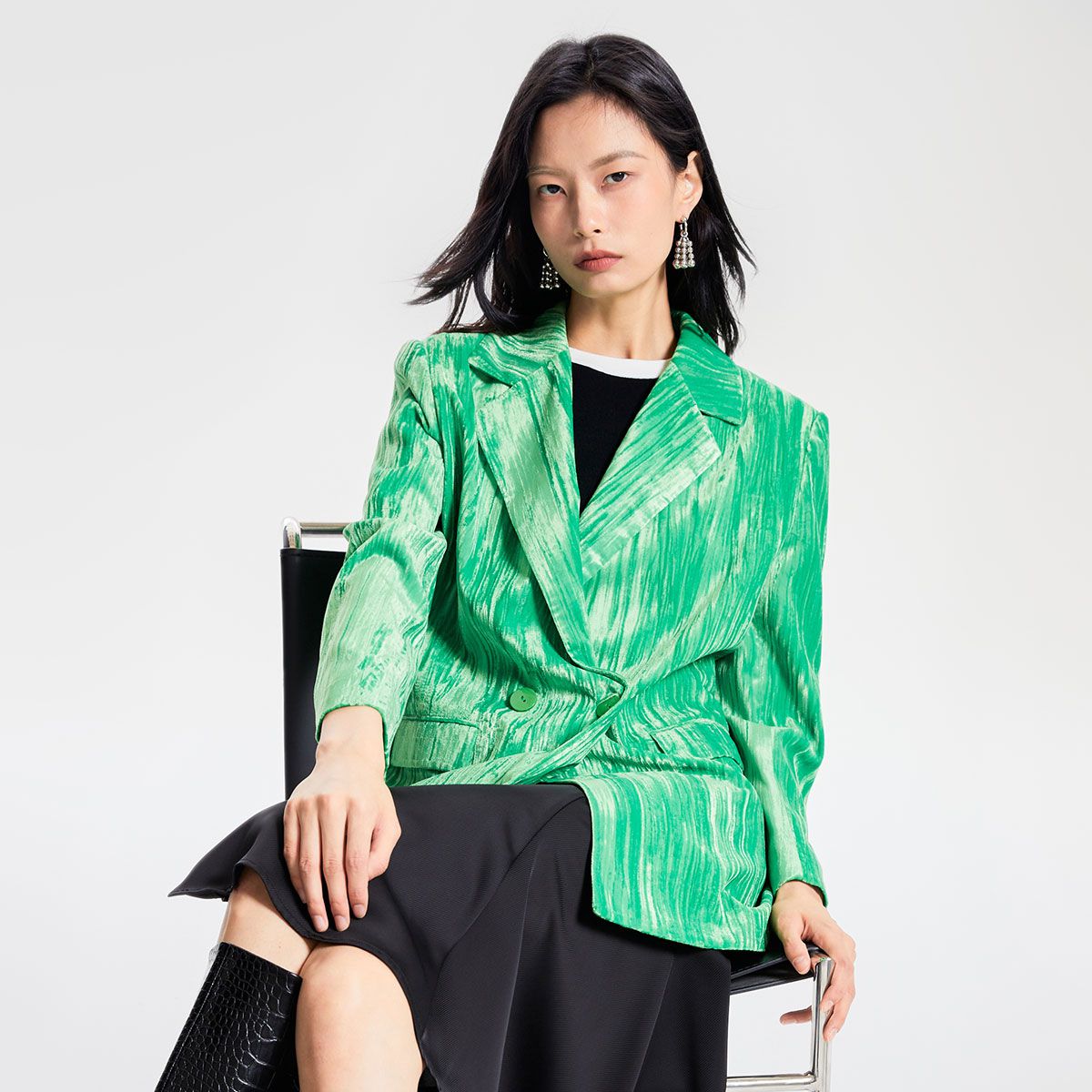 【光泽感面料】春夏直筒翻领肌理感简约韩系西装外套女百搭时尚 379793