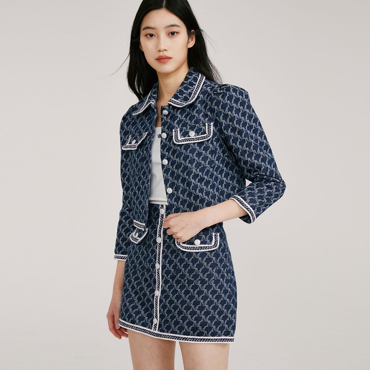 JZ玖姿撞色圆领微闪珠片小香花呢女式外套 841420