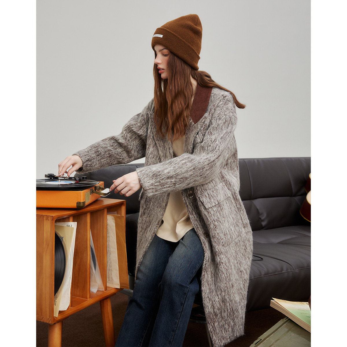 新休闲拼接撞色中长款上衣百搭气质女式大衣 589149