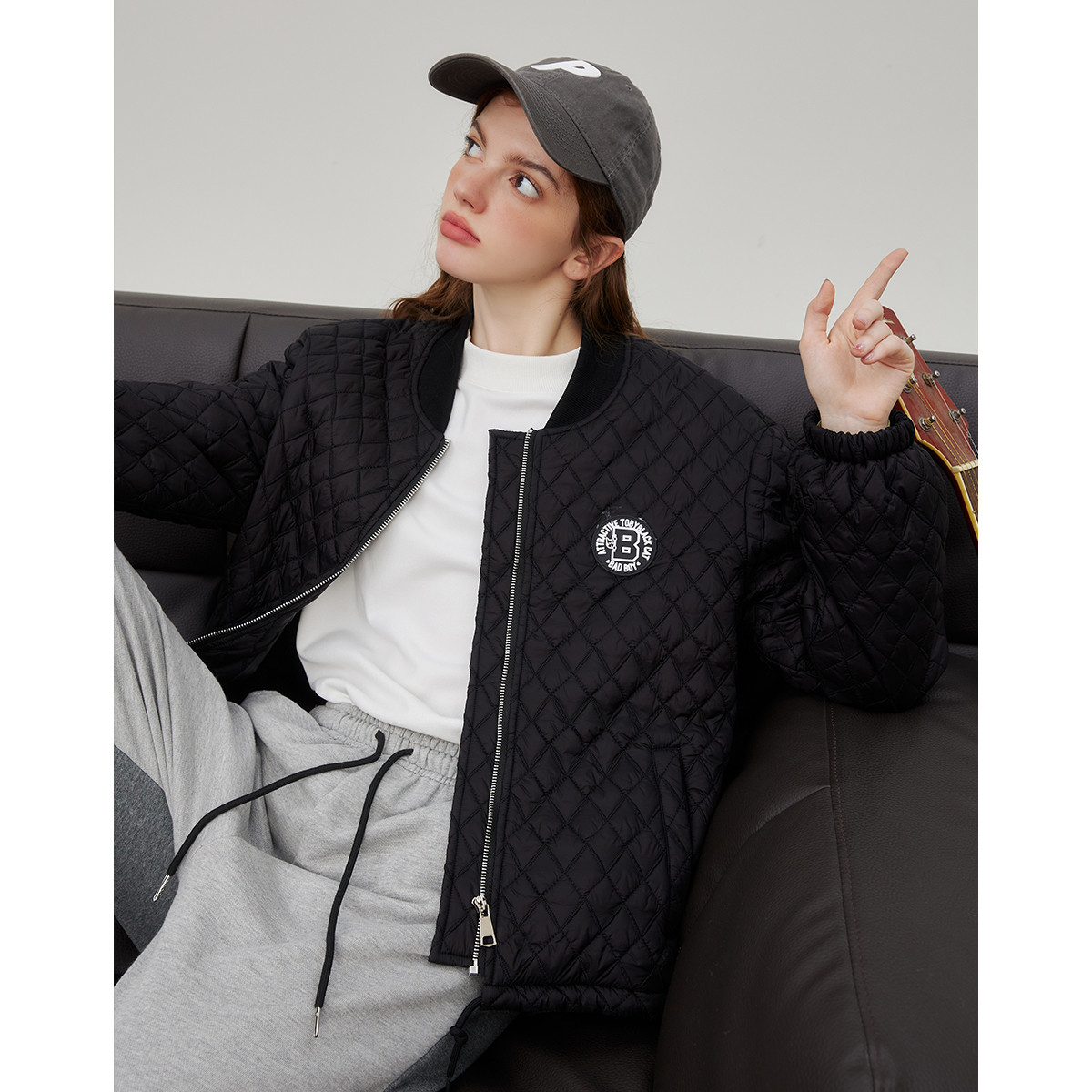 【绗缝菱格纹棒球服】短款外套轻型夹克休闲女式棉衣保暖显瘦 545117