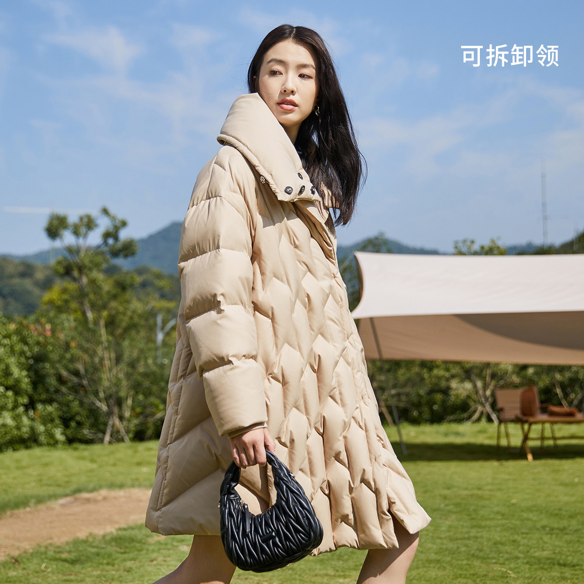 【90鸭绒】专柜同款保暖耐磨颗粒纺羽绒服女长款秋冬外套 755734