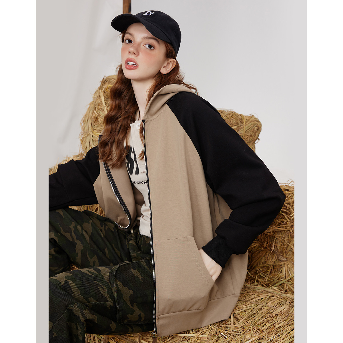 新简约撞色设计连帽长袖上衣休闲百搭女式外套 153949