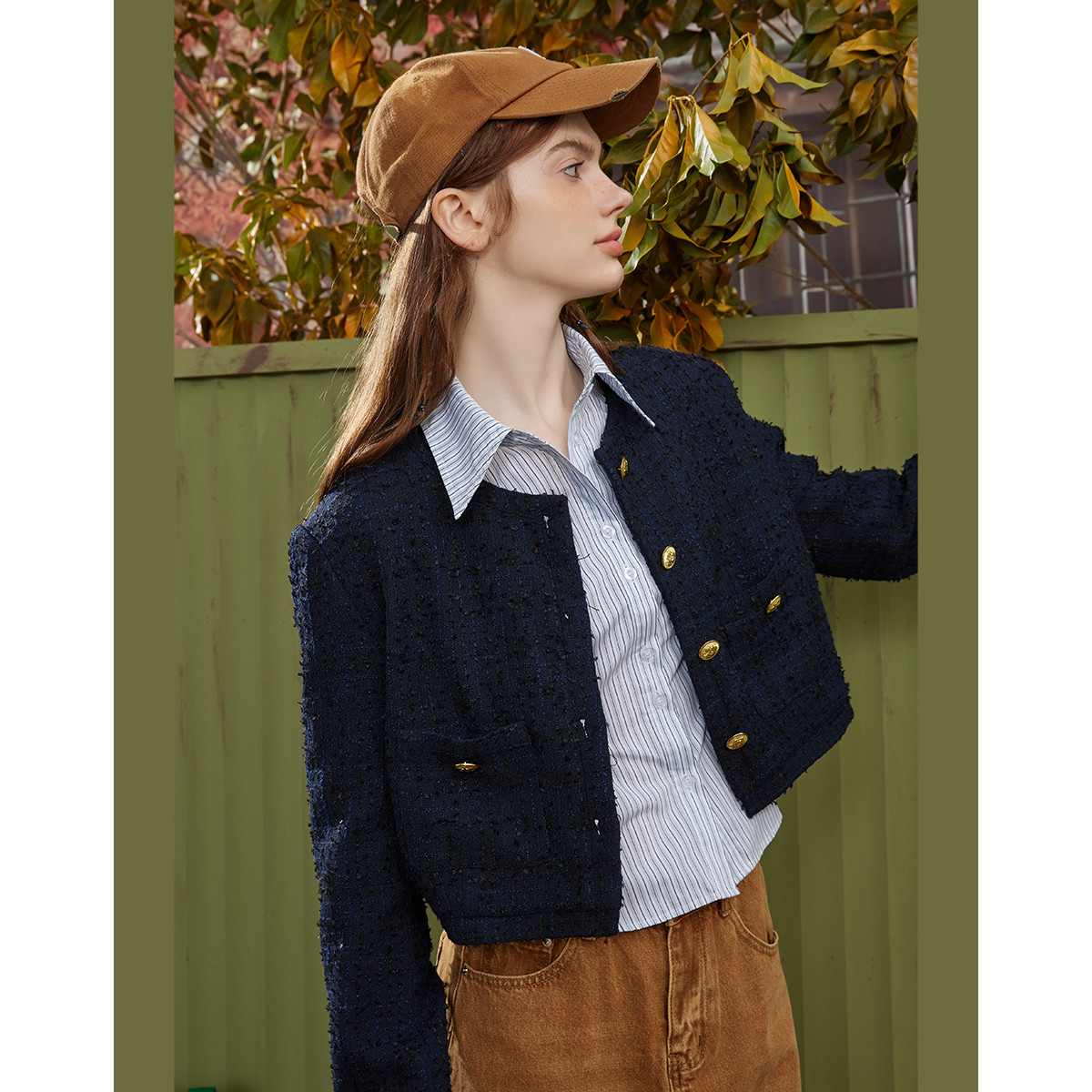 新圆领正肩小香风短款长袖上衣小个子通勤女式外套 124893