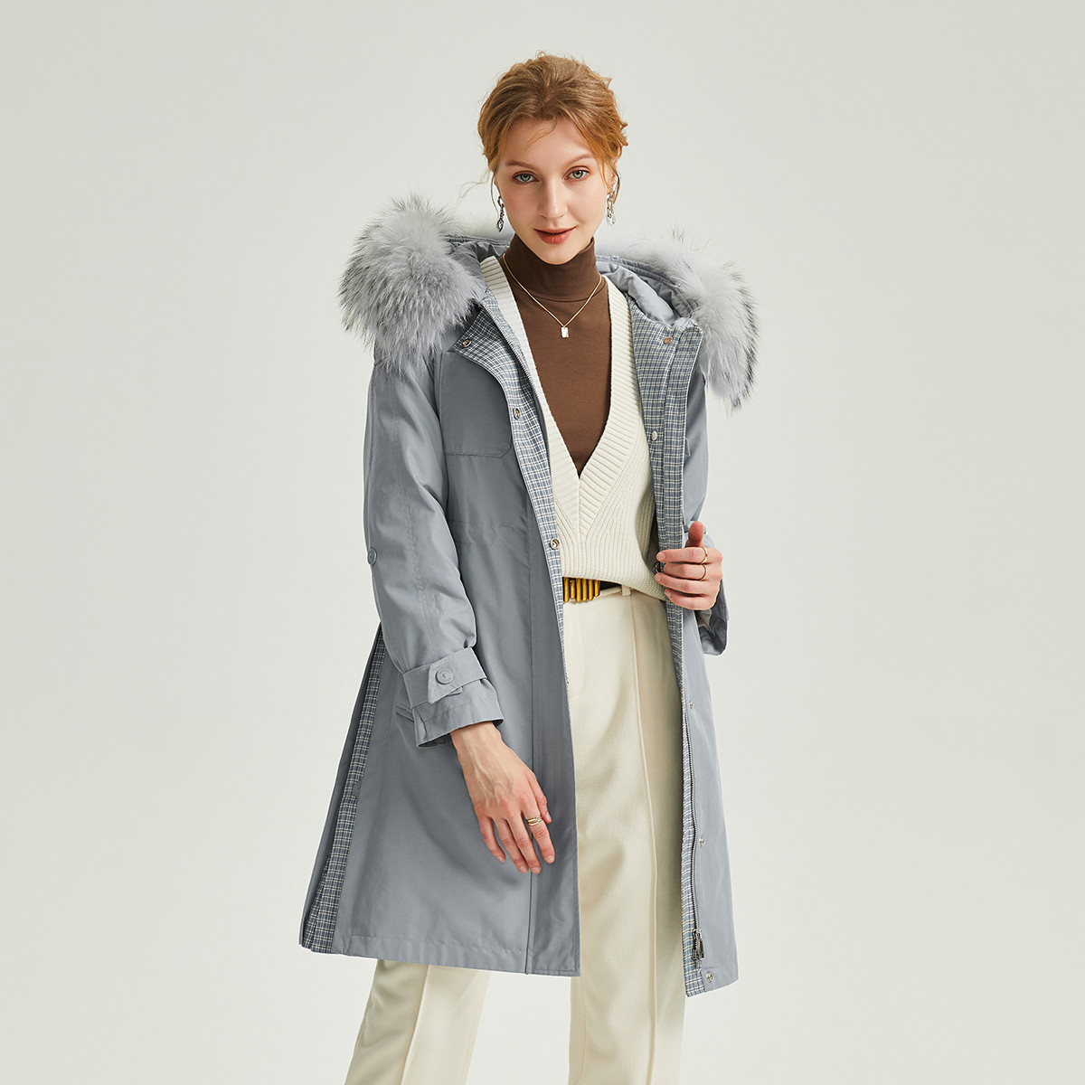 秋冬貉子毛领派克服女士休闲连帽收腰中长款工装羽绒服 668703