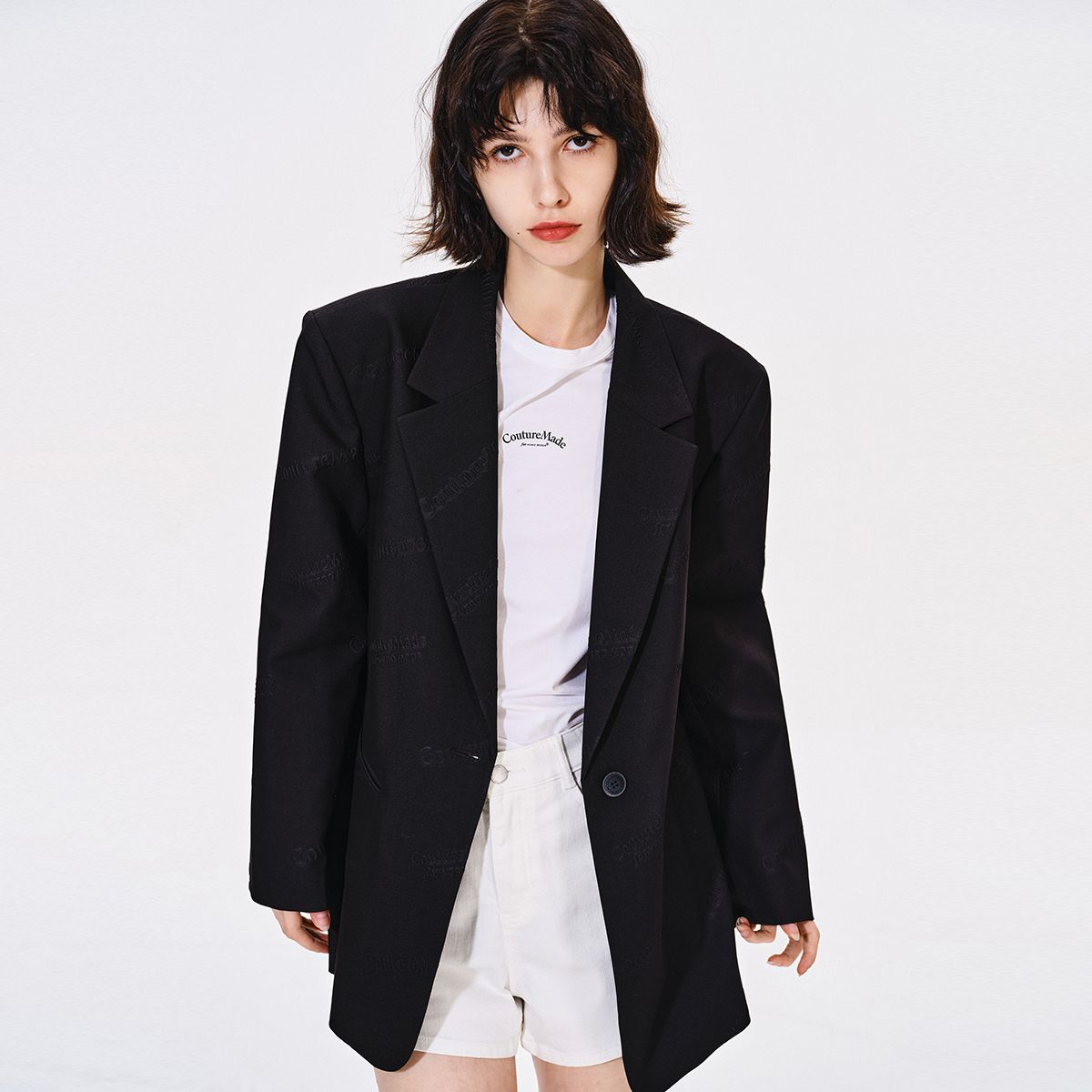 宽松印花一粒扣西装外套女气质百搭时尚春夏 523409