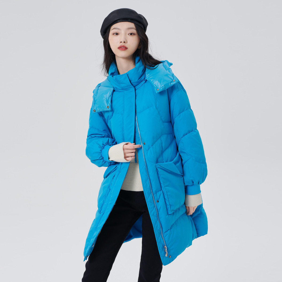 【90鸭绒】宽松中长款翻领收腰时尚保暖羽绒服女 578646