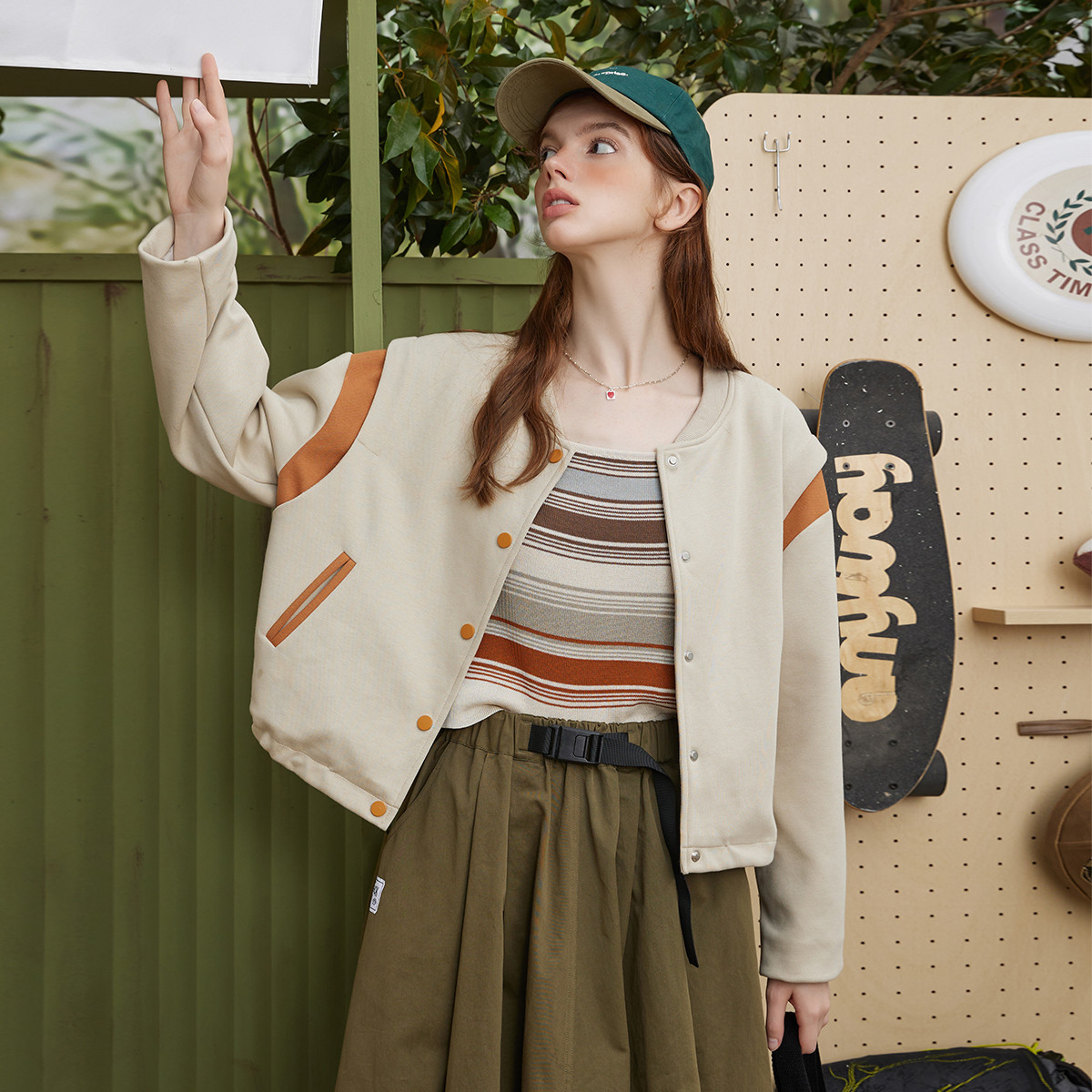 新个性撞色设计短款棒球服休闲百搭女式外套 387869