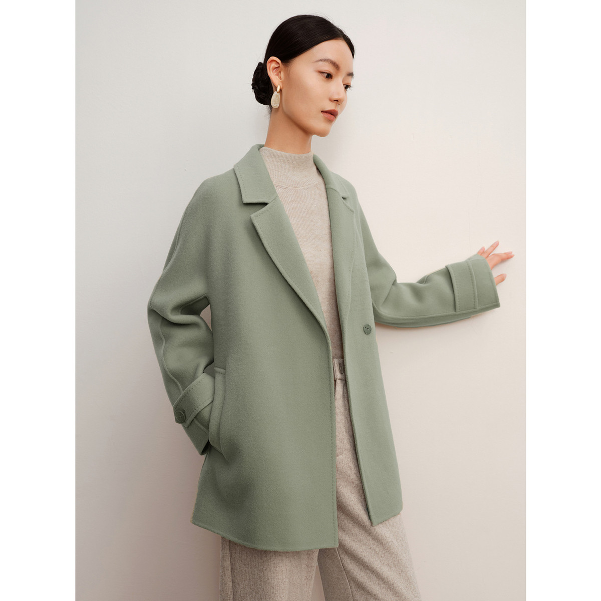 朗姿纯羊毛复古双面呢夹克高级感正肩毛呢冬季上衣 447257