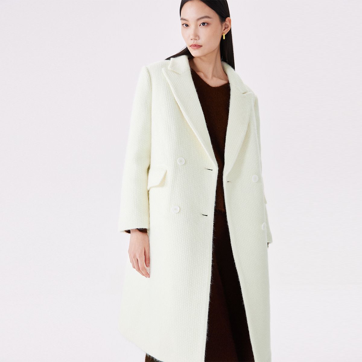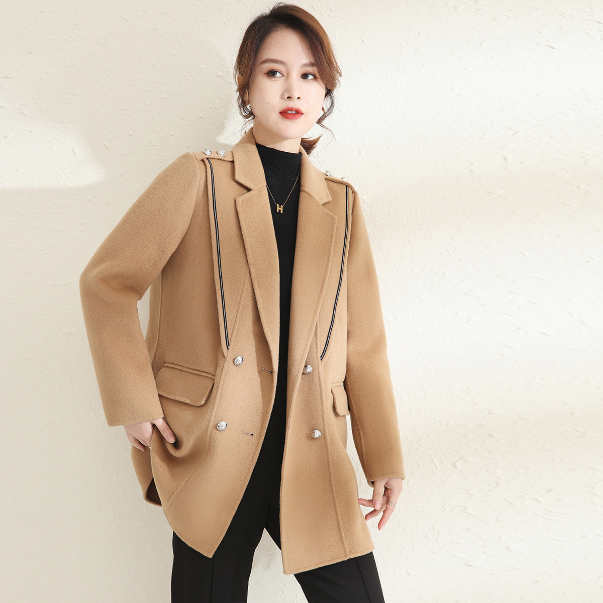 【100%绵羊毛】春秋休闲中长女式双面呢羊毛大衣外套 054943