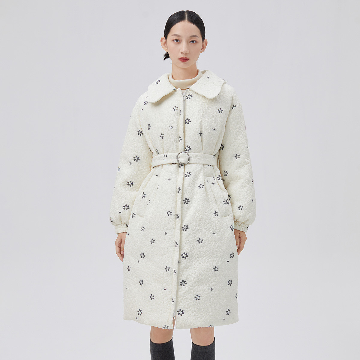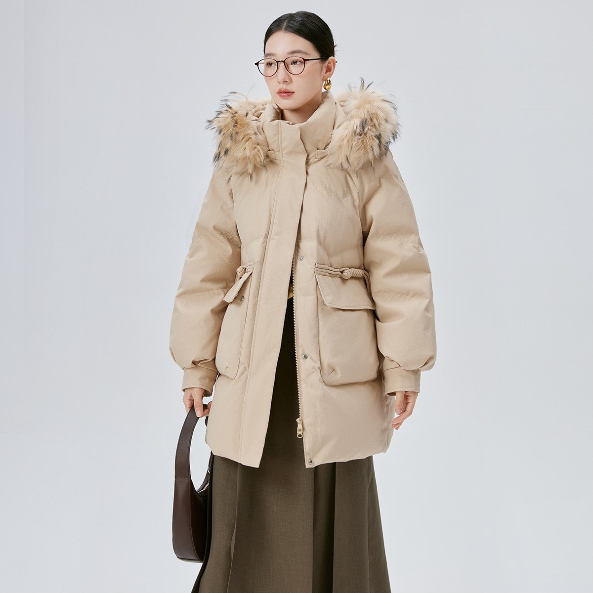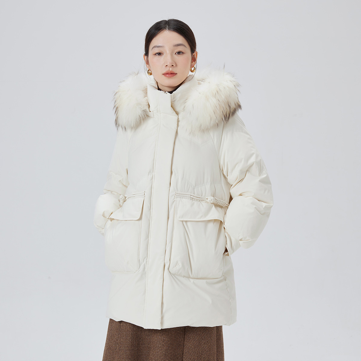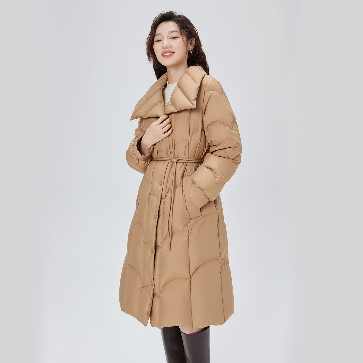 【90鸭绒】宽松中长款翻领收腰时尚保暖羽绒服女 578646