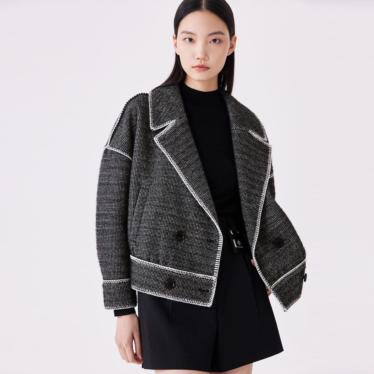 朗姿纯羊毛复古双面呢夹克高级感正肩毛呢冬季上衣 447257