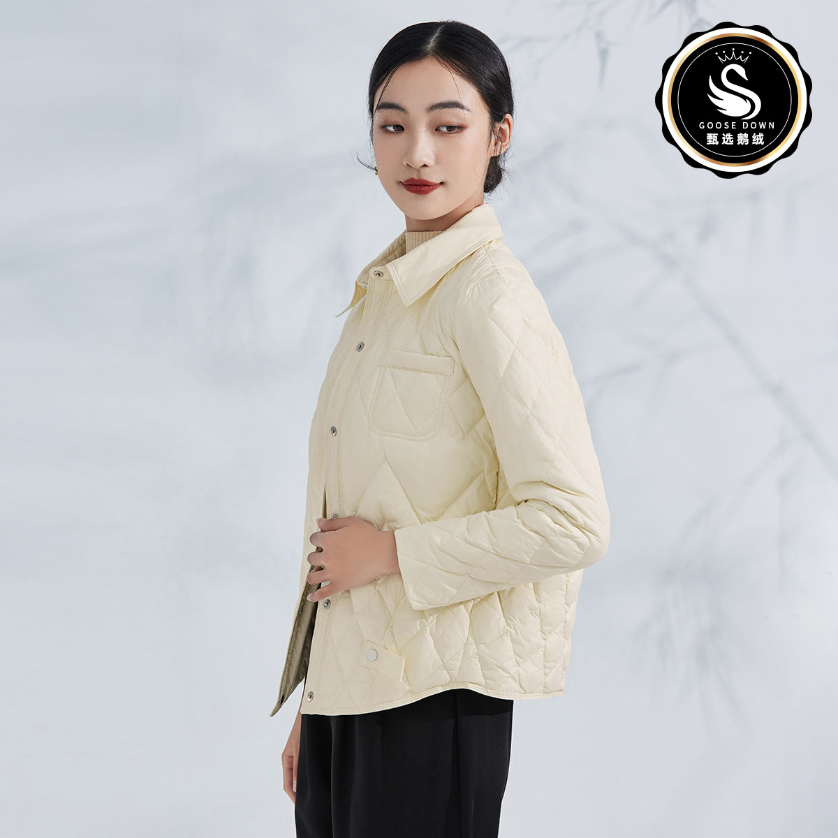 【鹅绒】菱形格小个子衬衫领秋冬轻薄短款女式羽绒服 773343