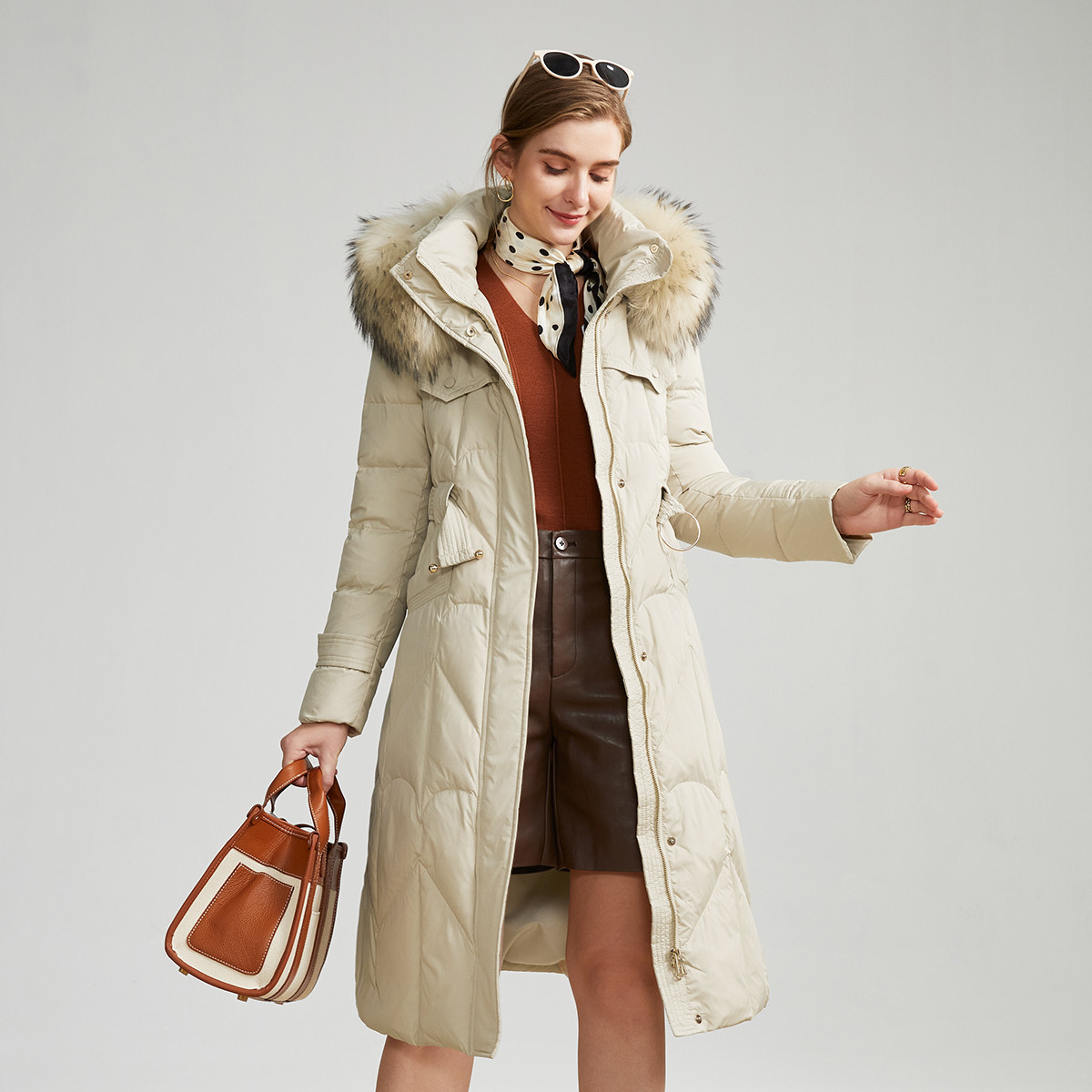 冬季可脱卸貉子毛领女士轻奢羽绒服收腰长款保暖休闲羽防寒 216351