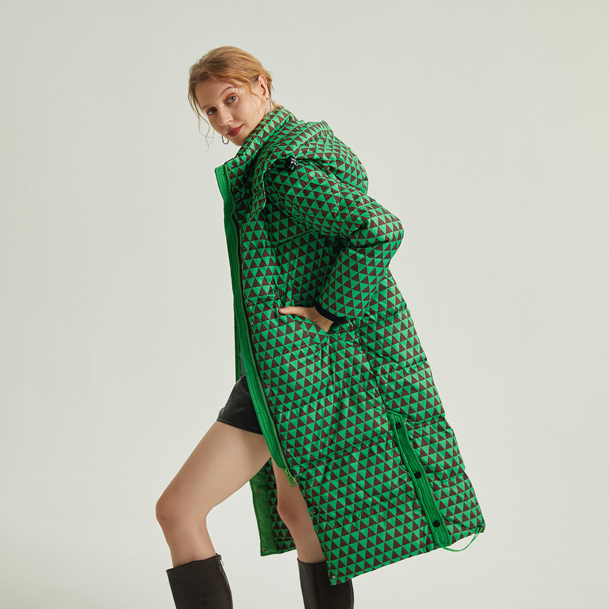 都市休闲长款女士连帽宽松舒适直筒加厚羽绒服 337823