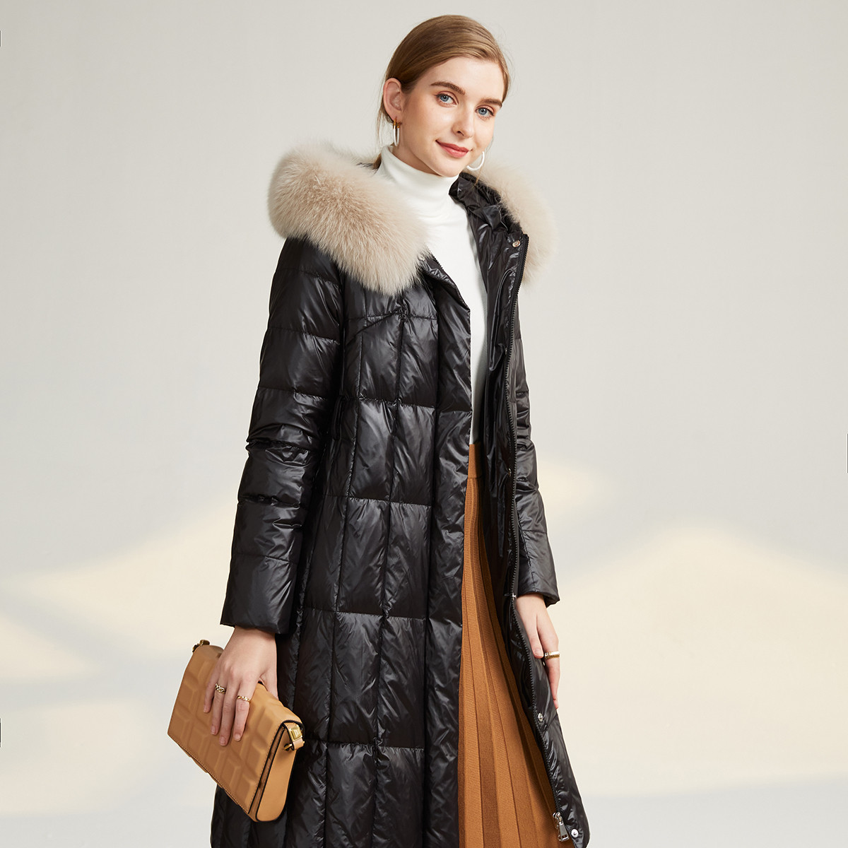 【鹅绒爆款】冬季女士长款羽绒服简约连帽防寒保暖极寒服 593759