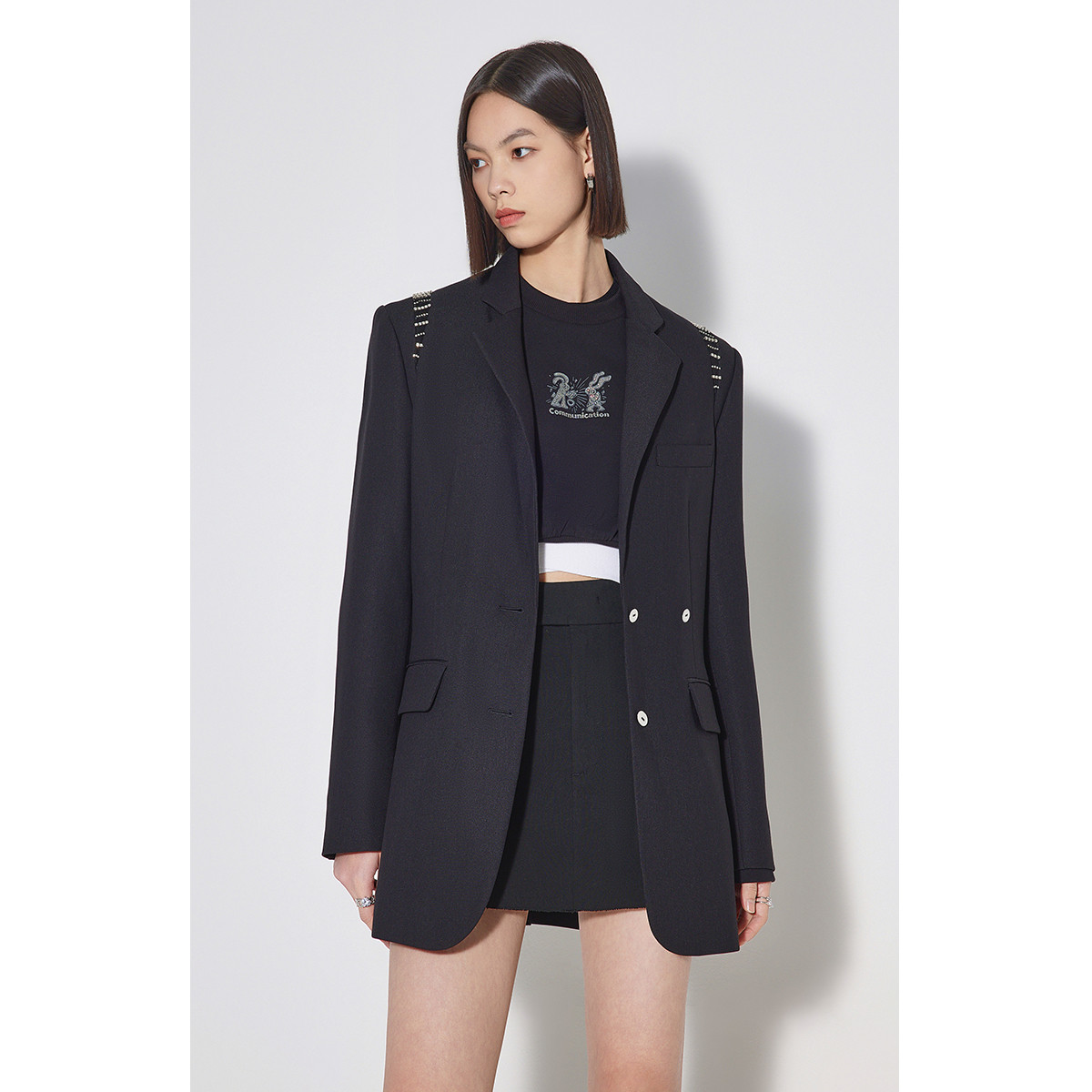 春装 小众设计西装外套女钻链通勤中长款 658319