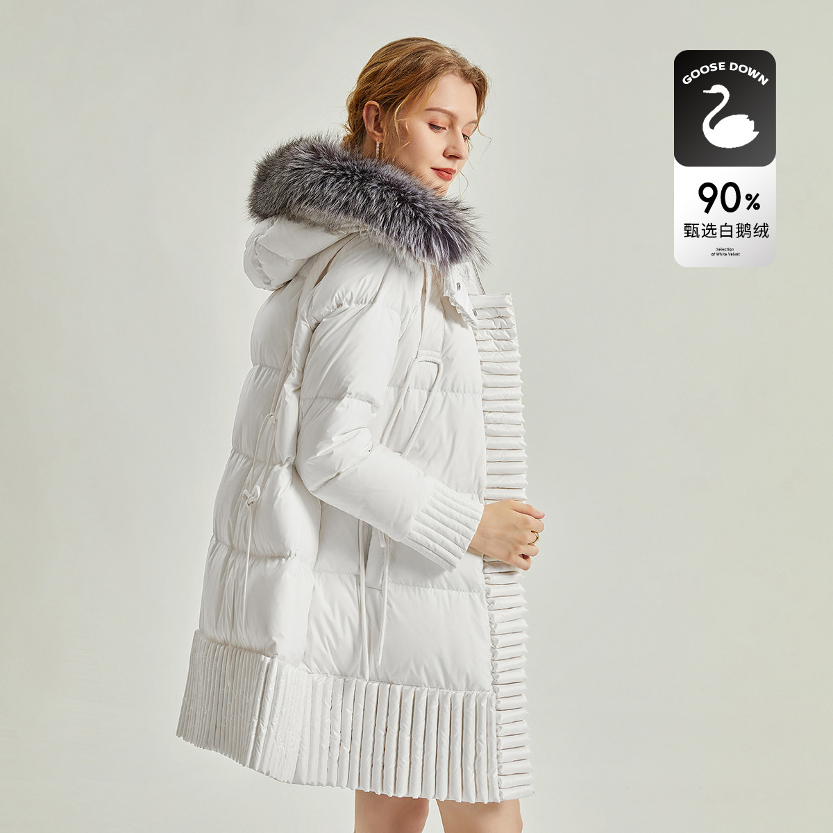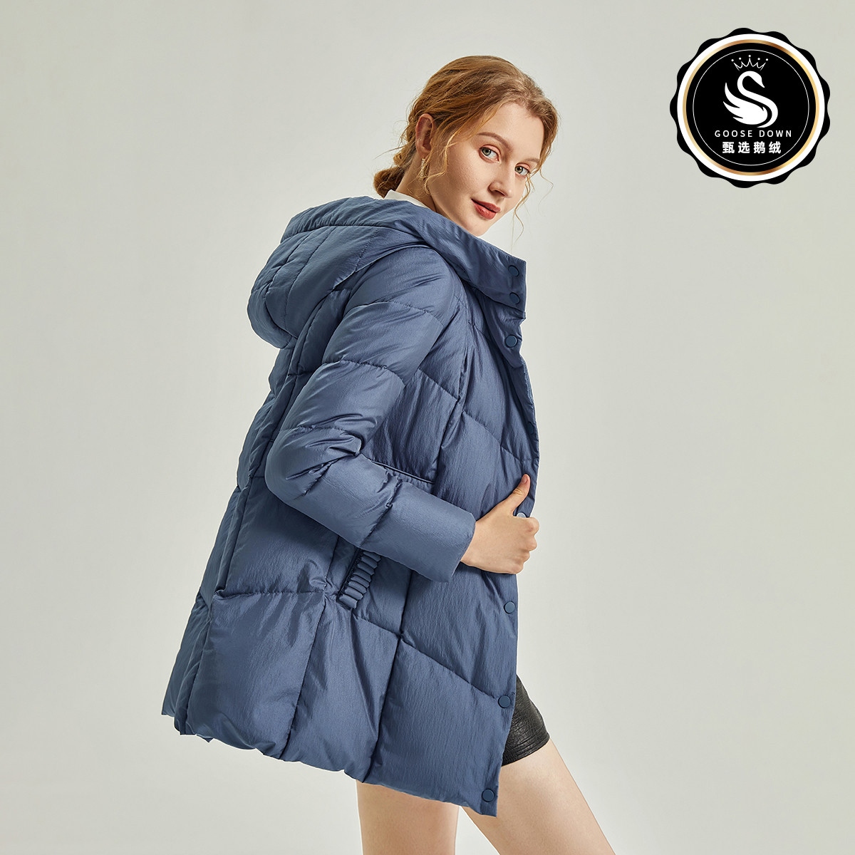 【鹅绒】轻柔零压无束加厚女士学院风减龄连帽宽松中长款羽绒服 205535