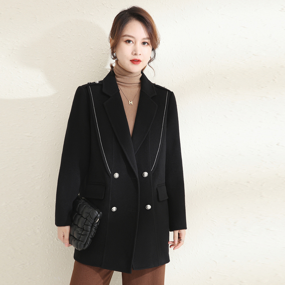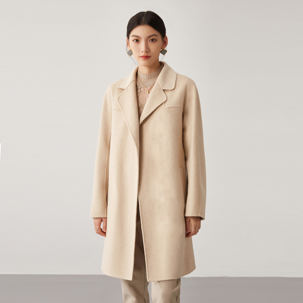 【桑蚕丝】秋冬简约大气绵羊毛大衣女双面呢中长款外套 813215