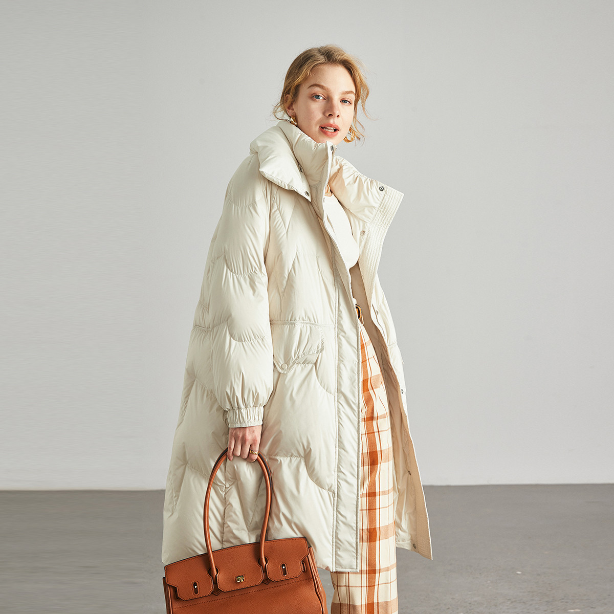 女式双层立领优质90绒保暖宽松廓形休闲长款羽绒服 118431