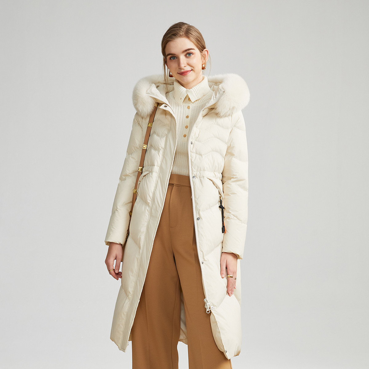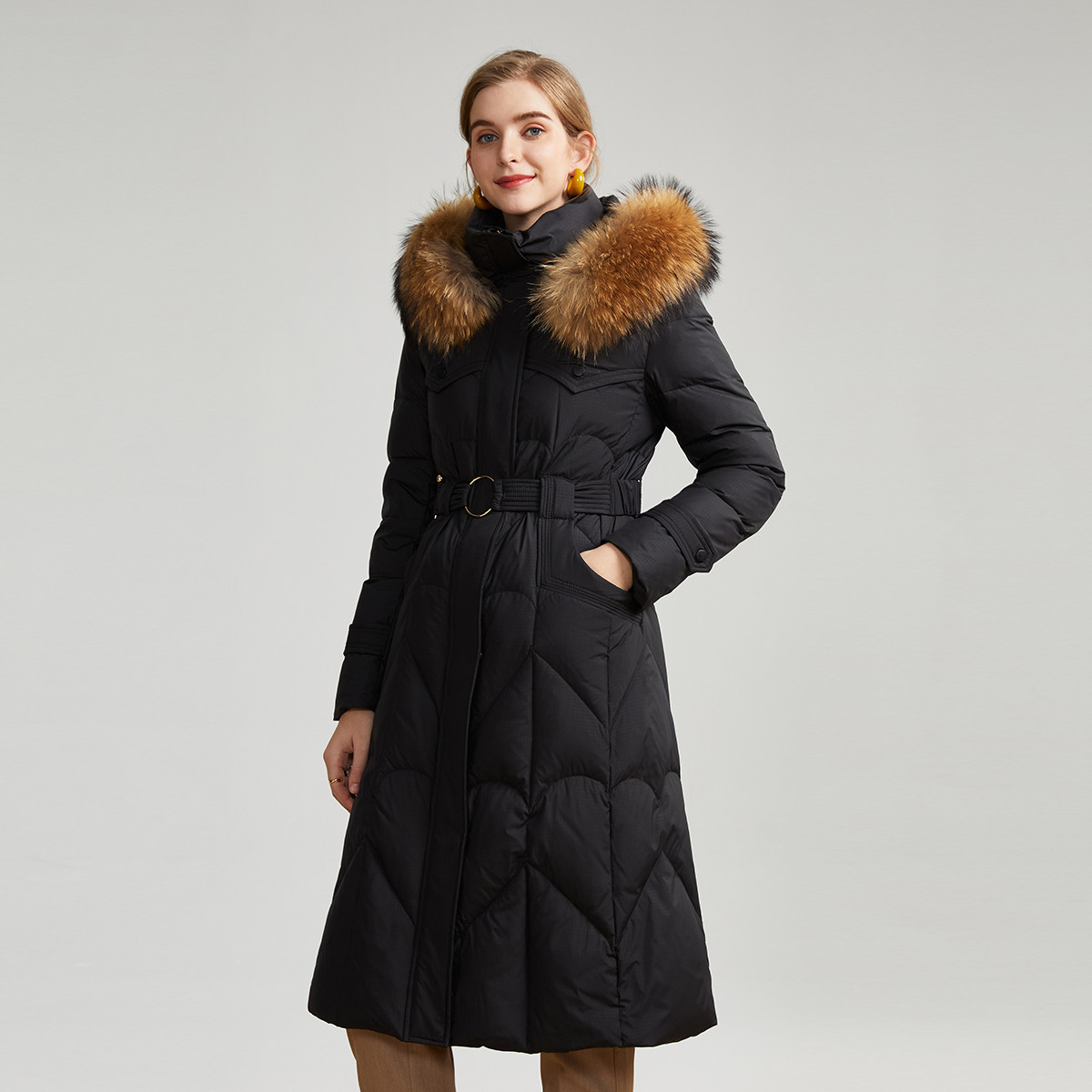 冬季可脱卸貉子毛领女士轻奢羽绒服收腰长款保暖休闲羽防寒 059103