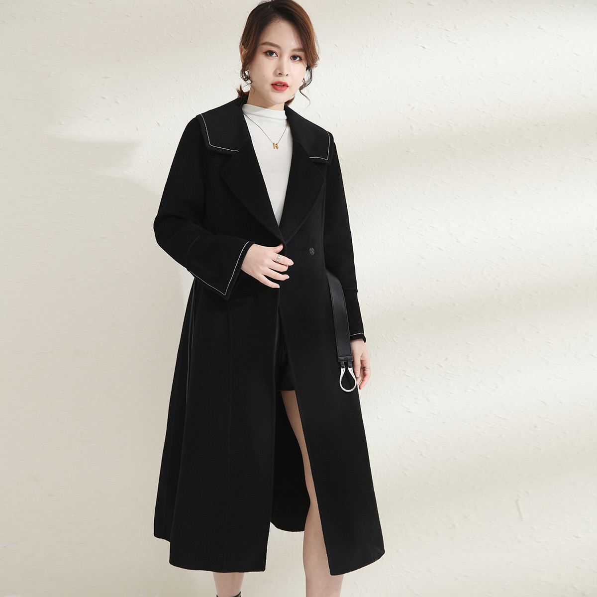 【100%绵羊毛】秋冬气质长款女式大衣双面呢羊毛外套 370271