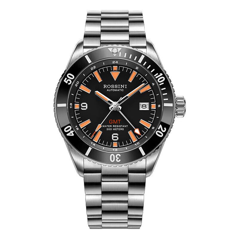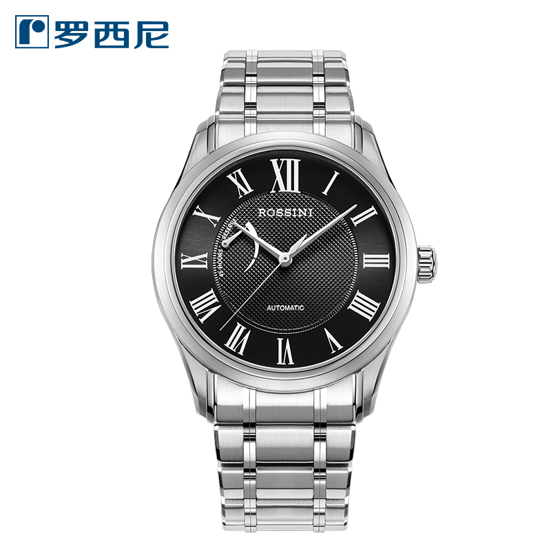 Rossini罗西尼 启迪系列 机械手表商务黑盘钢带男表SJ5615W04B