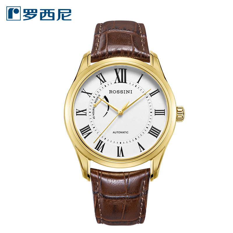 Rossini罗西尼 启迪系列 机械手表商务白盘皮带男表SJ5615G01C