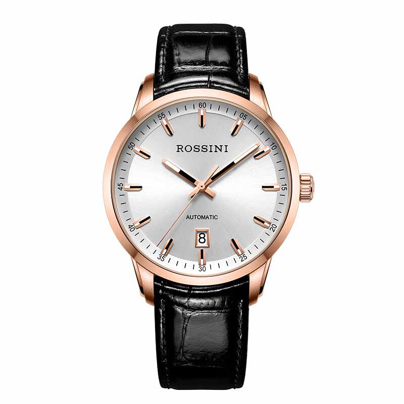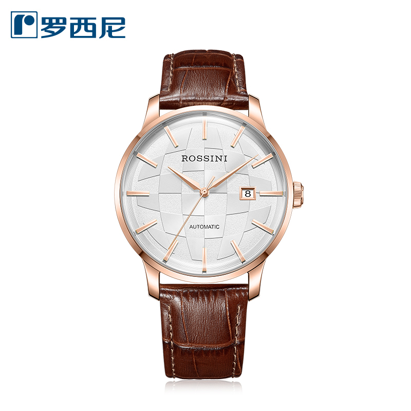 Rossini罗西尼 机械手表商务休闲时尚夜光日历防水情侣款 白盘皮带男表50019G01C