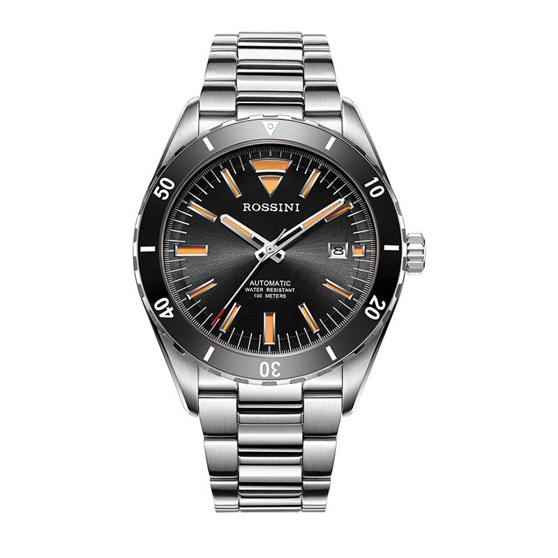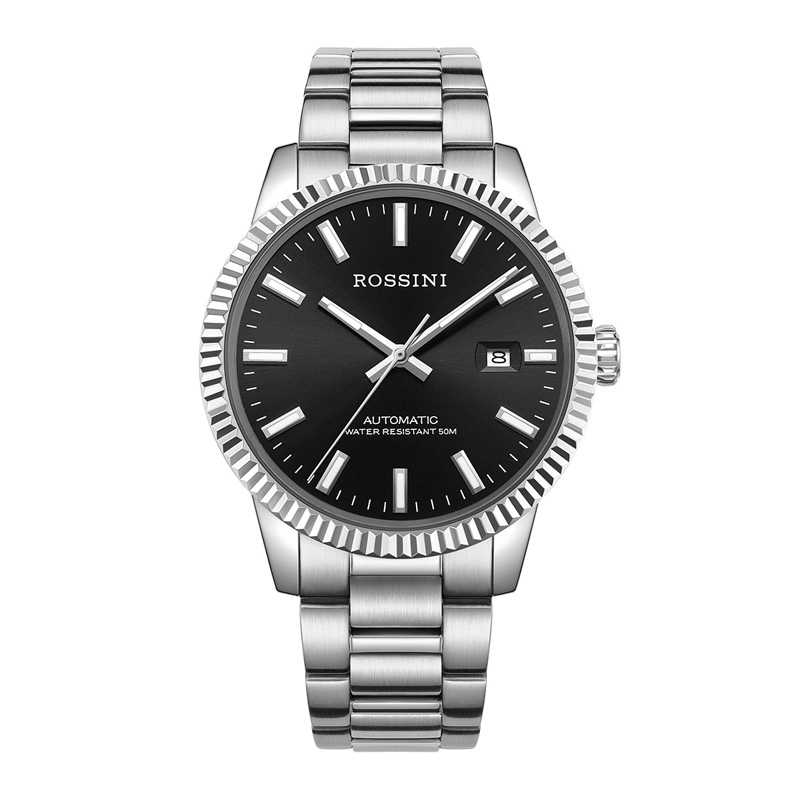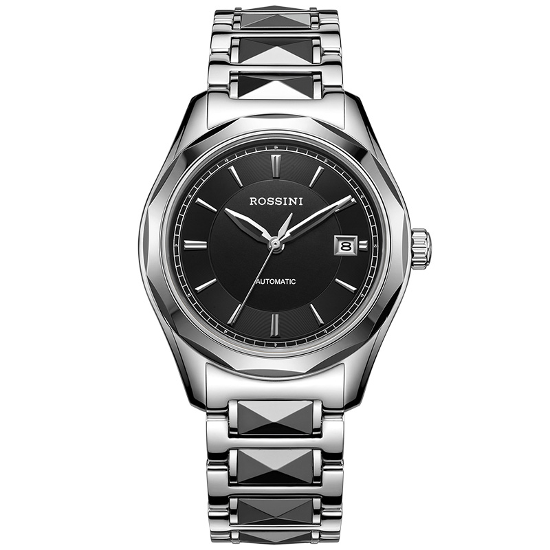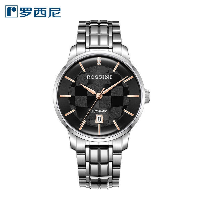 Rossini罗西尼 启迪系列 机械手表情侣款黑盘钢带男表6443W04A