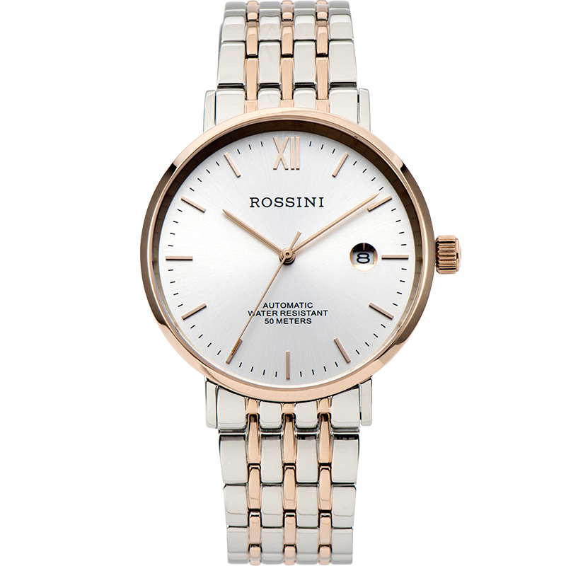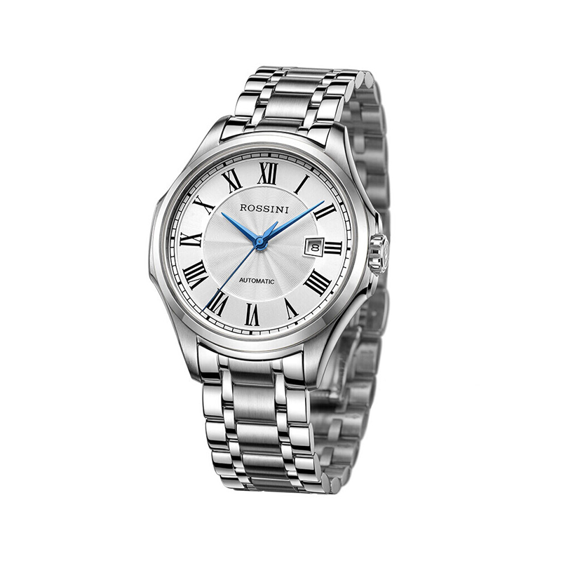 Rossini罗西尼 时尚简约商务品质百搭防水机械手表白盘钢带男表7443W01A