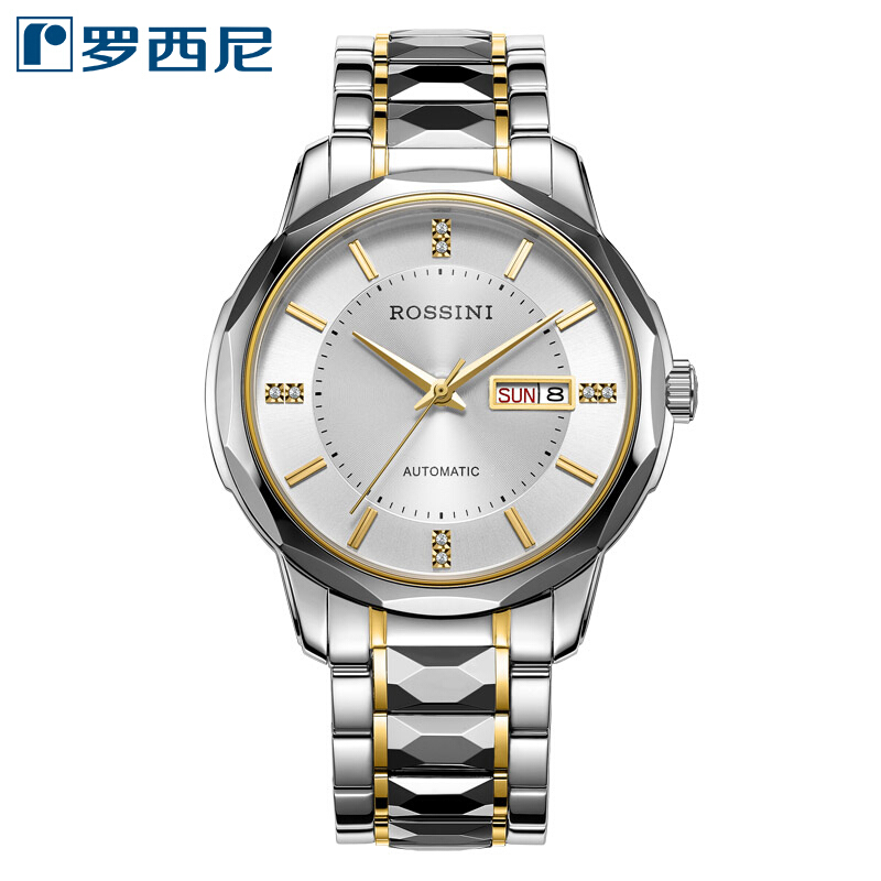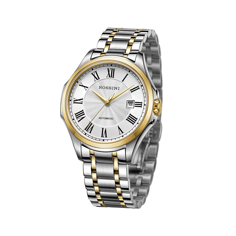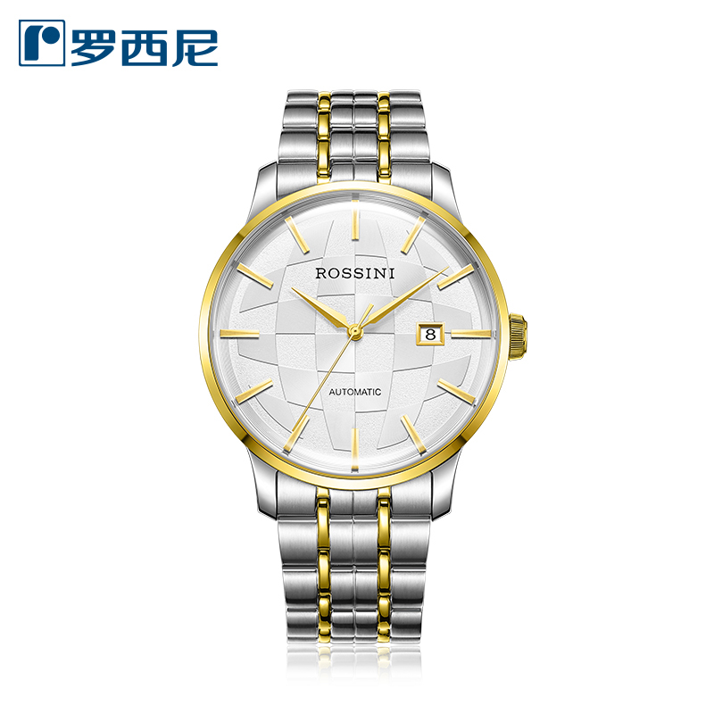 Rossini罗西尼 雅尊商务系列休闲时尚日历钢带机械男表 间金白盘钢带 8713T01B