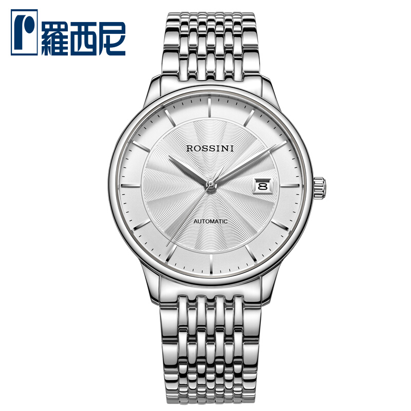 Rossini罗西尼 简约儒雅超薄时尚腕表日历自动机械手表 白盘钢带男表 6715W01A
