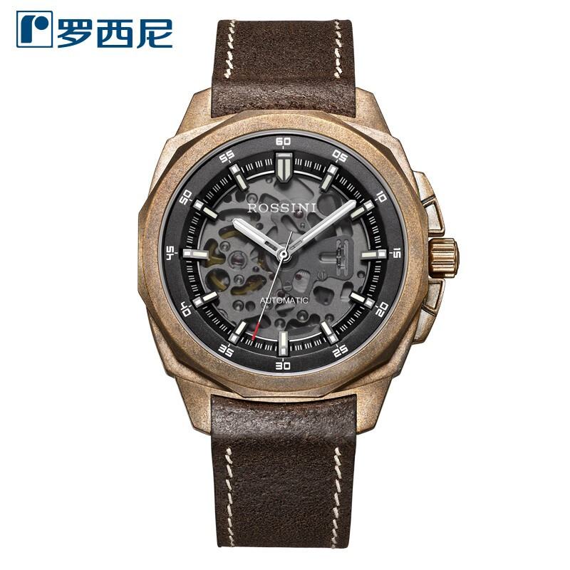 Rossini罗西尼 勋章系列 自动机械手表潮流时尚镂空黑盘皮带男表 5979C02A