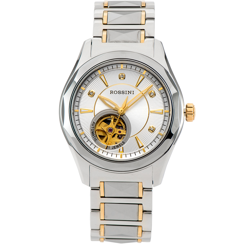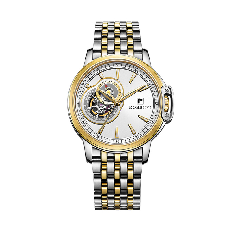 Rossini罗西尼 时尚腕表镂空自动机械男表 间金白盘钢带 8633T01B