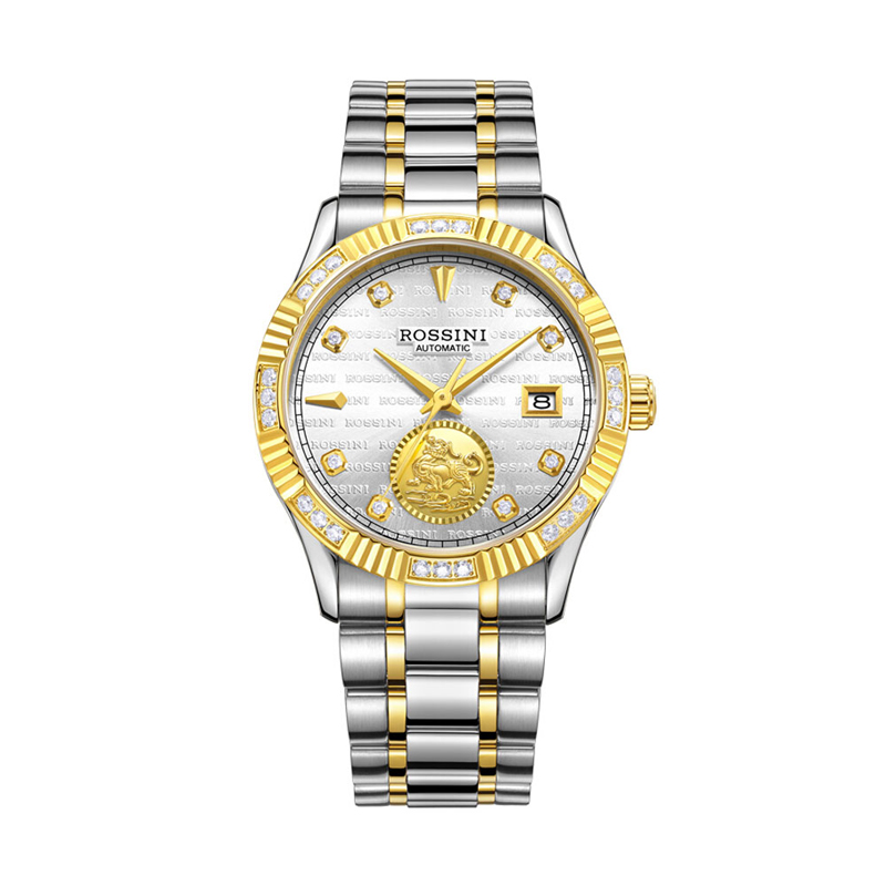Rossini罗西尼 貔貅大气高档时尚腕表日历机械男表 间金白盘钢带 8705T01A