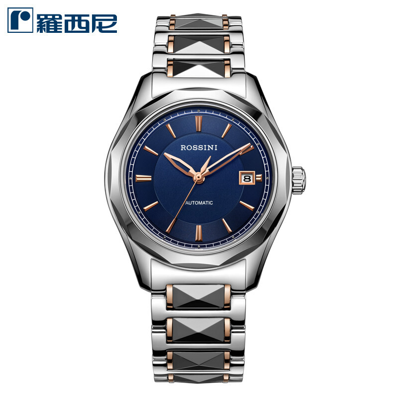 Rossini罗西尼 时尚腕表日历防水自动机械表蓝盘钢带男表 6443W05B