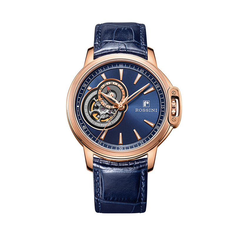Rossini罗西尼 雅尊商务系列 全镂空自动机械表男士手表 蓝盘皮带5793G05A