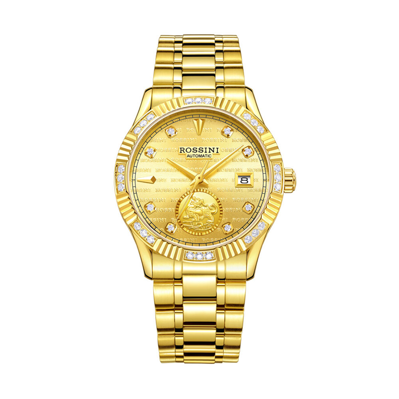 Rossini罗西尼 貔貅大气高档时尚腕表日历机械男表 金色金盘钢带 8705G06B