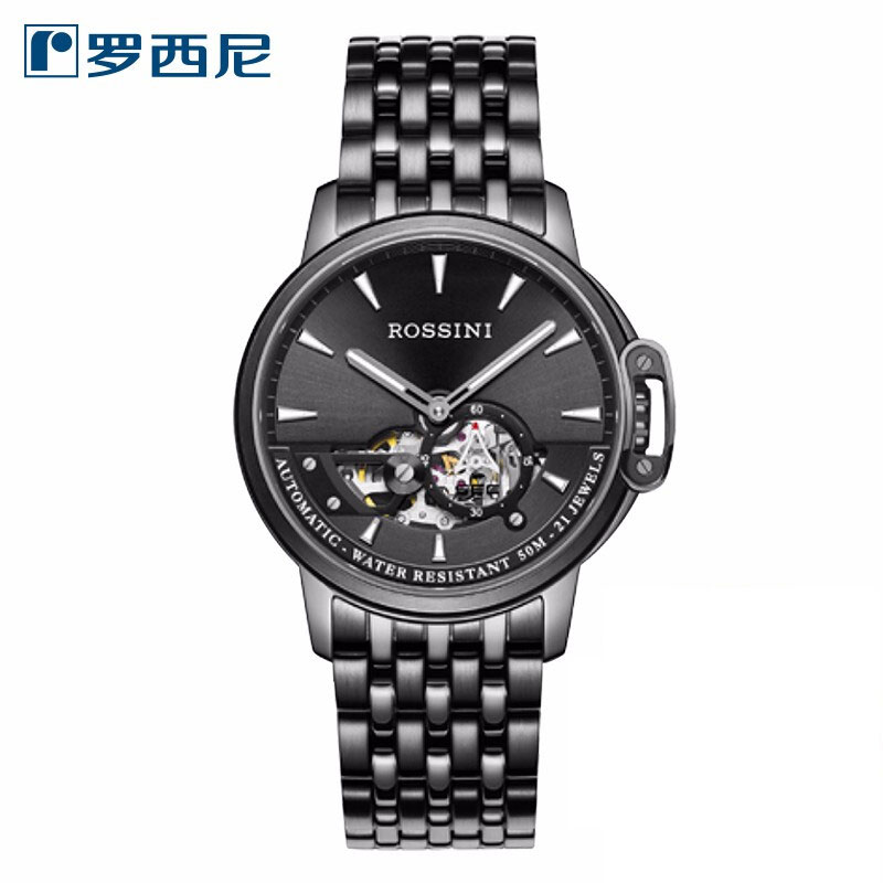 Rossini罗西尼 勋章系列镂空防水夜光黑盘钢带男表 6793B04A