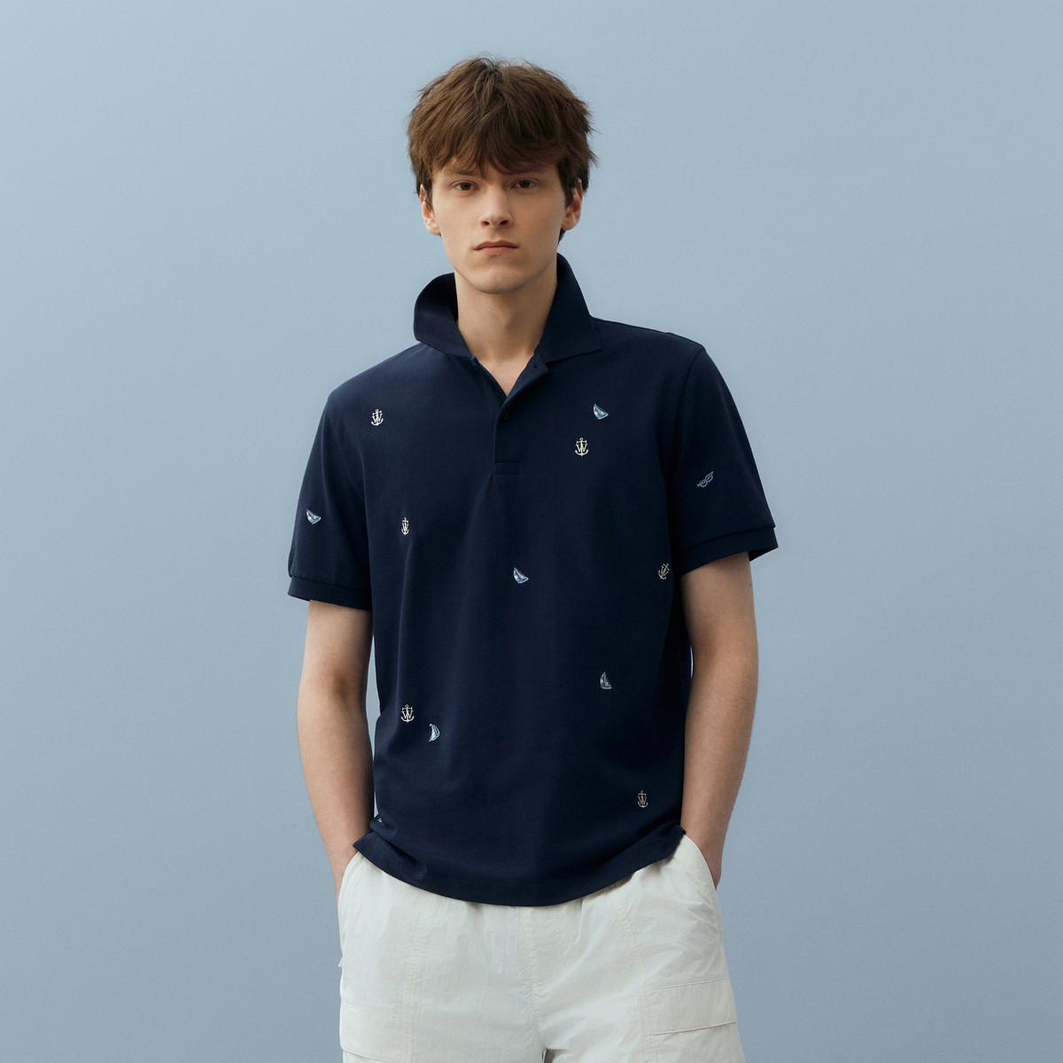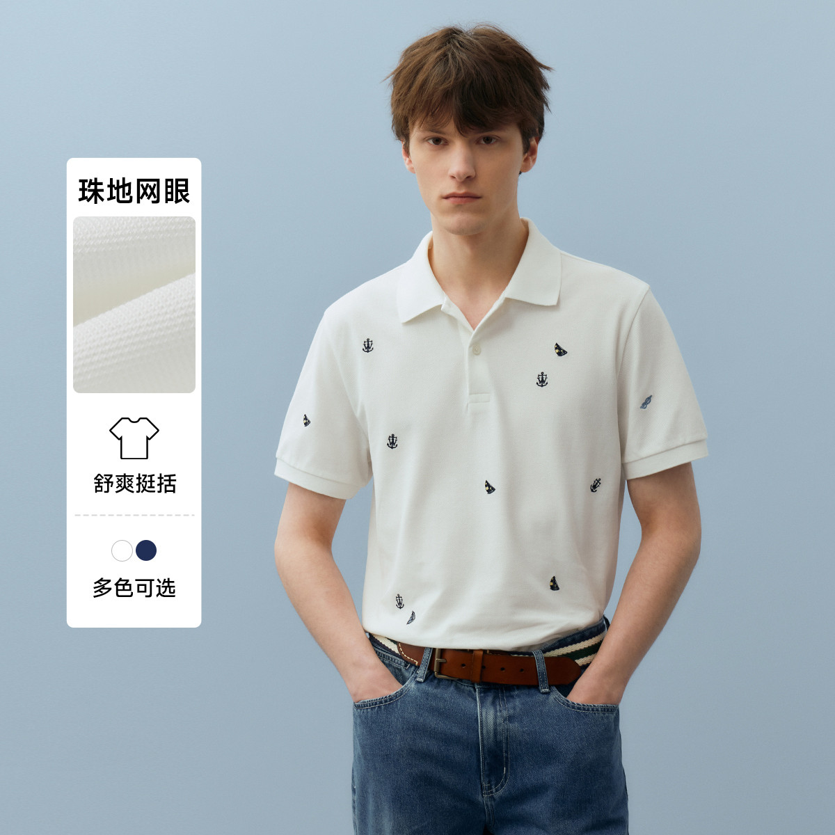 【舒适透气】2025夏季山不在高简约精致刺绣男士短袖POLO 013896