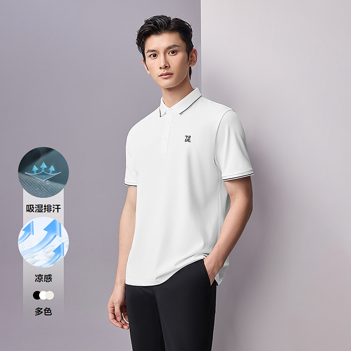 【吸湿排汗】25夏季凉感抗菌撞色刺绣珠地男士短袖POLO衫 674952