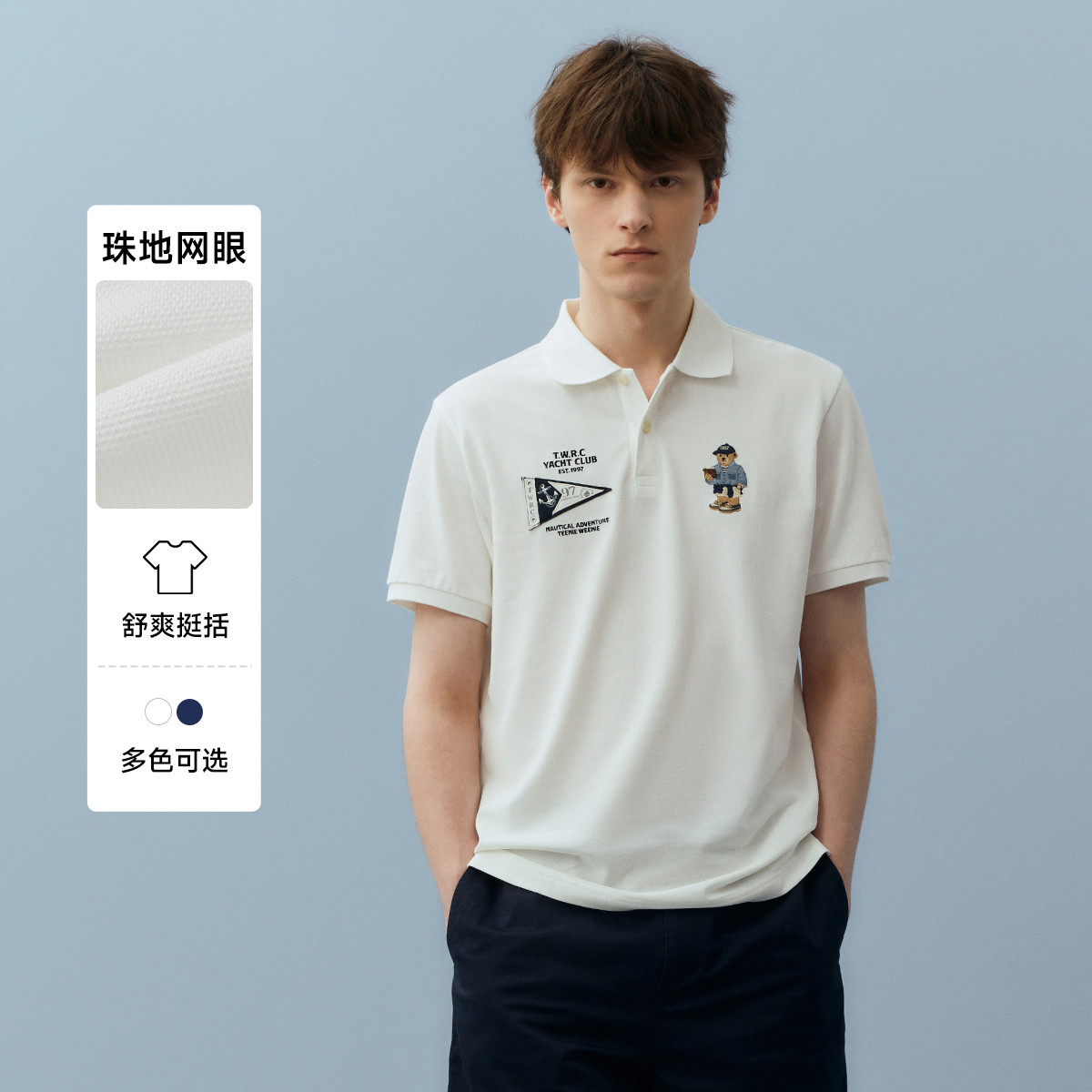 Polo衫小熊时尚潮流简约POLO衫白色夏季休闲polo衫男 437441