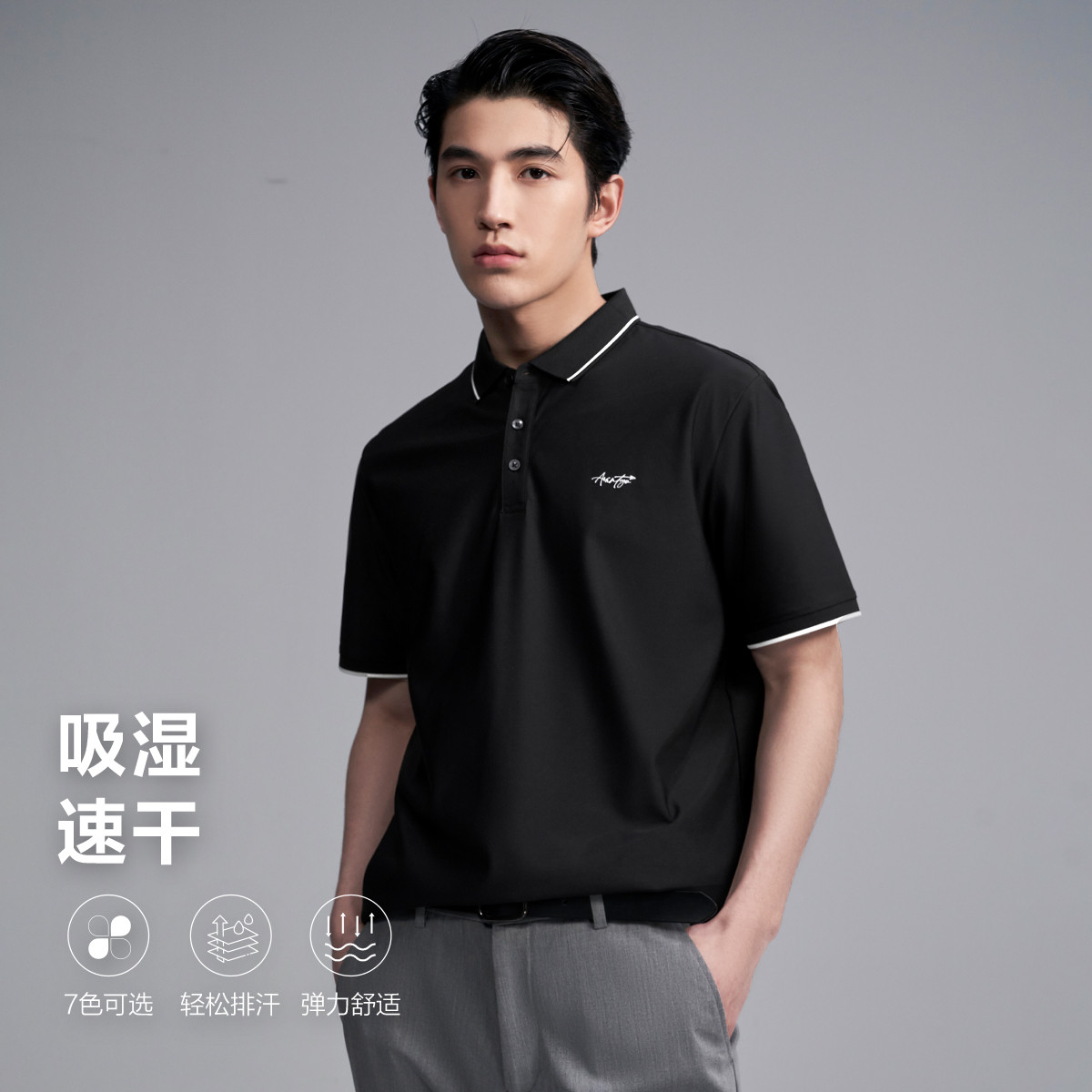 【抗菌防螨】25夏季轻商务系列翻领凉感微弹男士短袖POLO 598984