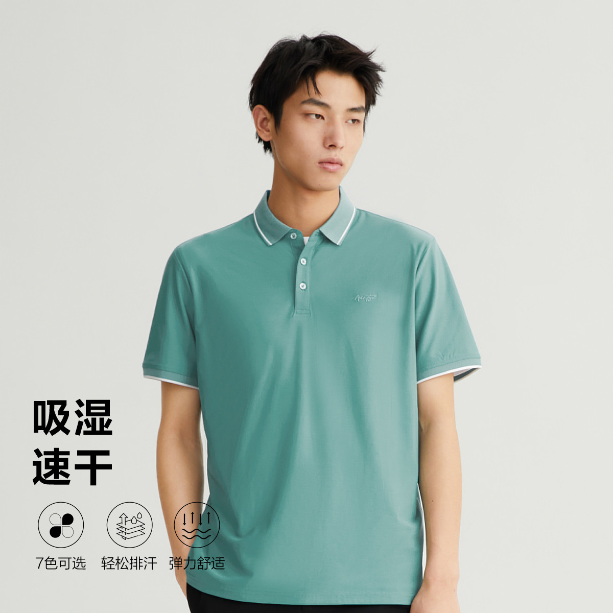 【轻商务】夏季热销纯色翻领刺绣凉感透气男士POLO衫 165576