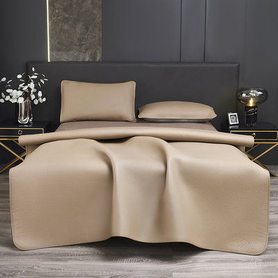 祥梦庭 高端头层水牛皮凉席三件套 卡其色 1.8M*2M 均厚:5.5MM