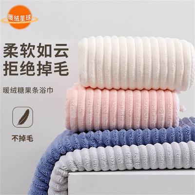 宜朵(YIDUO)暖绒糖果条加大浴巾 粉色*1条