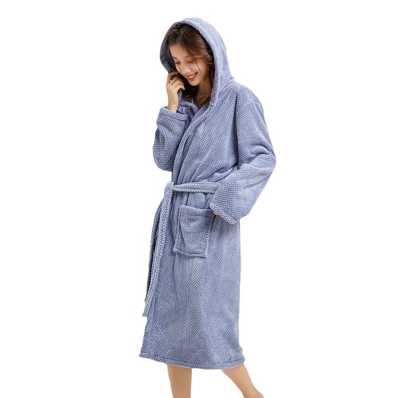 菠萝格浴袍成人秋冬连帽珊瑚绒浴衣吸水快干柔软男女情侣款浴服四季款睡袍